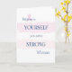 O cartão do incentivo do cancro da mama com uma fita cor-de-rosa e as palavras "acreditam em o senhor mesmo que você é uma mulher forte."