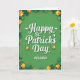 Projetado com um rico fundo verde-esmeralda, este cartão de dia de São Patrício centra-se numa mensagem de amor destinada a um marido, com um tom caloroso e íntimo 💚. No centro, "Feliz Dia de São Patrício" aparece em letras brancas grandes com sombreamento suave que o faz parecer ligeiramente elevado da superfície. Logo abaixo, "MARIDO" está escrito em branco, em letras maiúsculas, num estilo sem serifa direto e afetuoso. Uma borda de trevos e trevos de quatro folhas em vários tons de verde envolve as bordas, como uma moldura folhosa que puxa a mensagem para perto ☘️. Entre os trevos, pequenas flores laranja-amarelo e pequenos pontos redondos adicionam um contraste brilhante, como pequenas faíscas em torno de uma celebração compartilhada. A combinação de verde e laranja também sugere cores irlandesas, dando à cena um ambiente festivo e aconchegante sem sobrecarregar o layout. Ao longo da borda externa, as formas dos trevos se sobrepõem em alguns lugares para criar profundidade, com