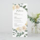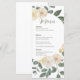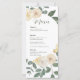 Uma coroa de água verde enfeita este design de cardápio de casamento.