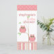 Os padrões do rosa abundam neste cartão de coordenação do menu para um chá de fraldas ou o outro evento temático da coruja. Todo o texto é personalizado facilmente.