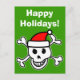 Cartão do Natal do crânio do papai noel com as estações que cumprimentam. Desenhos animados de esqueleto engraçados com vestir um chapéu de Papai Noel. Cartão bonito do xmas. Boas festas!