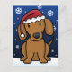 Envie a cartão do Natal do Dachshund a todos seus amigos animal-loving este ano! Uns desenhos animados bonitos do doxie do kawaii sentam-se em cima da neve recentemente caída que veste um boné do papai noel, quando os flocos de neve derivarem delicadamente abaixo toda ao redor dele. Este é o casaco vermelho.