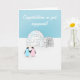 Cartão "Parabéns pelo seu noivado". Dois pinguins coloridos em pé orgulhosamente fora de sua casa (iglu). Desenhei os pinguins em rosa e azul para um pouco de diversão e usei tons semelhantes no iglu. Os pinguins estão se segurando amorosamente pelas mãos, nadadeiras, asas? Obrigado por ver meu trabalho.
