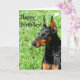 O cartão do Pinscher do Doberman do feliz aniversario, pugilista de Ritmo da fotografia projeta