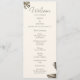Adicione um pouco de elegância eterno à sua cerimônia de casamento com este cartão do programa de casamento da monstera em champanhe e tons de ouro. Perfeito para casais modernos, este programa destaca a festa de casamento, a ordem das cerimônias e obrigados especiais em um layout refinado. Um belo guardião para os hóspedes apreciarem.