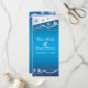 Cartão de cerimônia de casamento no inverno azul, cinza prateada, floco de neve branco, com banda ondulada em cinzas prateadas com estrelas e flocos de neve elegantes azuis sobre fundo azul brilhante do céu. Moderno e contemporâneo, mas adequado para um casamento tradicional. Essa elegante, elegante e na moda pode ser usada em outras ocasiões especiais, como noivados ou aniversários. Uma escolha perfeita para o inverno, dezembro ou casamentos de Natal.