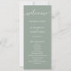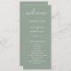 Apresentando nosso casamento minimalista e moderno Apresentando nosso cartão minimalista e moderado do Programa de casamento, com uma cor verde de saga serena. A delicada caligrafia branca adiciona um toque de sofisticação a este cartão do Programa Mar dos Verdes, fazer-o uma escolha ideal para uma celebração moderna de casamento. Personalize ou edite ainda mais clicando no link "personalizar mais" e usando nossa ferramenta de design para modificar esse modelo. Todos os estilos de texto, cores, tamanhos podem ser modificados para ajustado das suas necessidades. selecione o tipo de papel conforme desejar antes de comprar.