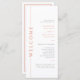 Faça seu dia de casamento exclusivamente seu com nosso cartão de programa minimalista, cor de laranja e branco, plana e dupla face. Este programa apresenta espaço para escrever uma ordem de cerimônia, itinerário da linha cronológica do evento, informações de festa de casamento e obrigado que você envia da noiva e do noivo. Este programa elegante é fácil de editar e foi impresso diretamente no Zazzle, permitindo que você crie um na moda e uma adição memorável ao seu dia especial!