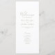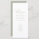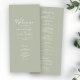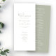 Esta carta do Programa para o Dia do Casamento, simplesmente projetada e deslumbrante, apresenta um design elegante, moderno e mínimo tipográfico com um tema verde sábio. Pronto para personalizar com os detalhes da cerimônia do Dia do Casamento. Por favor, navegue no pacote de casamento mínimo Elegante verde Sage para obter itens de papelaria correspondentes.