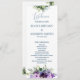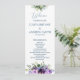 Cartão do Programa de Casamento Floral Puro e Verde - uma mistura harmoniosa de beleza inspirada na natureza e design elegante. O padrão floral roxo e verde encantador colocado sobre um fundo branco pristino cria uma estética visualmente cativante, dando o tom perfeito para sua celebração de casamento. A adição de texto azul marinho adiciona um toque de sofisticação, garantindo clareza e estilo na apresentação dos detalhes da sua cerimônia. Este cartão de programa serve não só como um guia para os acontecimentos do seu dia especial, mas também como um bem-estar apreciado para os seus convidados. Elevem sua experiência de casamento com esta carta maravilhosamente trabalhada que captura a essência do romance e do refinamento.