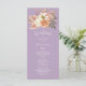 Mande seus convidados através do dia especial com este cartão de casamento floral púrpura e pêssego. Apresentando rosas de aquarela macia, detalhes de capa de pampas e tons rústicos quentes, este design de dois lados delineia elegantemente sua cerimônia e festa de casamento. Perfeito para comemorações românticas, de jardim, boho e casamentos rústicos.