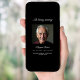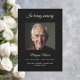 Um elegante programa de 2 páginas. Fundo preto, espaço para uma foto. Personalize e adicione nome, datas e texto. Texto branco.