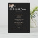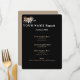 Criado no estoque de cartões semisgloss de 110 lb para impressão ótima de fotos, este clássico cartão de programa luncheon está esperando que você personalize com suas próprias informações. Tem cantos arredondados para uma aparência elegante e frente preta para um caso de na moda, junto com um bronzeador atrás para qualquer informação adicional. O texto é feito em Branco e no Taupe e apresenta um Dourado impressão brilhante no canto superior esquerdo. Um belo toque para seus prêmios também. Tem de personalizar este item. Escolha estilos e cores de texto, etc.