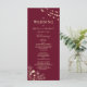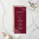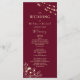 Cartão do programa de casamento elegante com fundo arrojado profundo, luzes brilhantes de cordas e sotaques florais românticos de ouro rosa. Inclui espaço para a sua ordem de cerimônia e nomes personalizados e data. Um toque perfeito para cerimônias de casamento rústicas, caindo ou românticas.