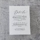Esta delicada carta de detalhes de caligrafia negra é perfeita para um casamento moderno. A design romântica minimalista apresenta uma magnífica e elegante tipografia negra num fundo branco com um aspecto simples e limpo.