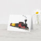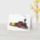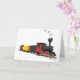 Cartão com um trem do brinquedo que chega na parte dianteira, partindo na parte traseira. Aperfeiçoe para o aniversário de uma criança.
