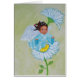 vôo do anjo do bebê entre margaridas. Notecard vazio para alguma ocasião. Apropriado para moldar.