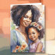 Lindo ilustração de uma mãe afro-americana segurando sua filha com flores em seu cabelo em uma bonito aquarela de arte ai. Feliz cartão de Dia de as mães com uma mensagem personalizada na dentro.