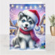 Uma cena de Natal fantástica com um adorável filhote de Rouco numa encantadora vila de Natal de neve.