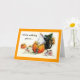 Esta carta de saudação de Halloween alegre e carinhosa traz o entusiasmo de Halloween vintage ao seu pequeno goblin através de um gato preto, fantasma e ratinhos, que não é assustador e que nasceu com bruxas. Personalize o cartão, alterando o texto e adicionando sua própria mensagem e/ou o nome do destinatário à parte superior frontal esquerda do cartão.