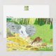 Um cartão com uma bela cena florestal que inclui uma corça e um filhote bebendo de um riacho perto de uma cachoeira. A imagem pode ser redimensionada e/ou reposicionada. Arte original de WBartworks.