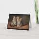 Dois gatinhos adoráveis se aproximam um do outro: Rapaz, garota. Isto é de uma pintura antiga assinada que foi transformada em um postal.