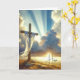 Os raios solares brilham numa cruz de madeira com uma cobertura branca a soprar na brisa. Todo o texto pode ser alterado.