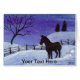 Uma pequena paisagem aquática de um burro num campo de neve silenciada contra e um céu noturno estrelado.
