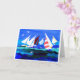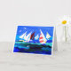 Um cartão geral com os barcos de navigação, feitos de uma colagem de papel pintado à mão. Vazio da esquerda para sua própria mensagem. Veja presentes igualmente de harmonização.