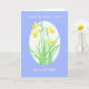 Um cartão bonito para o dia de St David, "através das milhas", com um grupo dos daffodils em uma luz - beira azul, de uma pintura do watercolour por Judy Adamson.