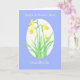 Um cartão bonito para o dia de St David, "dtodos nós", com um grupo dos daffodils em uma luz - beira azul, de uma pintura do watercolour por Judy Adamson.
