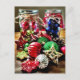 Cartão festivo do Xmas dos enfeites de natal do feriado com os ornamento brilhantemente coloridos dentro dos frascos de pedreiro em uma superfície de madeira rústica. Um grande cartão do Natal do país.