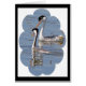 Os Grebes de Clarks que nadam junto, em um cartão projetado oval, com beira preta.