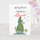 este cartão bonito dos parabéns da adopção é de um sapo pequeno por duas flores. A adopção é forever.