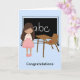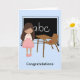 Este é um design bonito de uma rapariga que está na frente de um quadro-negro, de uma mesa e de uma cadeira. ABC é escrito no quadro-negro. O cartão é para uma rapariga que gradua-se do jardim de infância. Obrigados ao Hungryjpeg para alguns dos elementos no design.