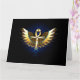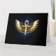 Tankh egípcio ouro com asas brilhantes e apadrinhadas sobre fundo preto. Símbolo mágico.