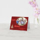Este cartão de boas-vindas de Natal Joyous vermelho escuro é simples e elegante. A foto é fechada em um quadro fino de decágono dourado (10 lados) e o cartão é decorado por um simples design gráfico de árvore de Natal. Você pode adicionar sua própria fotografia e tem um casal de linha para adicionar um nome de família ou nomes individuais. A saudação interna também pode ser alterada. A rica cor vermelha e o ouro fazem com que este cartão de Natal seja design moderno, na moda e agradável.