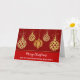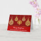 Feliz Natal para a neta e sua carta de família com uma design moderna com ornamentos de ouro e fundo vermelho.