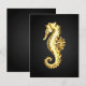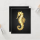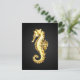 Artista, polígono, cavalo marinho espumante, folha de ouro sobre fundo negro.