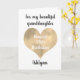 Uma placa neta feliz de 16 anos que apresenta um belo coração dourado, que você pode personalizar embaixo com o nome dela. A mensagem do dentro diz: "Espero que hoje e todos os dias estejam cheios de muito amor, riso e diversão. Eu te amo, sempre. Feliz 16º aniversário!" A mensagem do cartão também pode ser personalizada se você quiser.