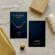 Suporte simples e moderno para colar ou pulseira com texto editável e dois marcadores de orifícios impressos para seus brincos. Observe que os marcadores e o efeito ouro são impressos. Você pode editar as cores, a fonte, o texto e o tamanho.