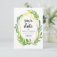 Este "Cartão de Save the Date de casamento com Folhas Geométricas Douradas" é uma ótima maneira de anunciar a data do seu casamento para familiares e amigos! Você pode personalizá-lo facilmente para torná-lo único! Para personalização adicional, clique no link "personalizar mais" e use nossa ferramenta de design para modificar este modelo.