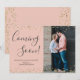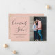 Confetti Dourado em Cartões de Anúncio de Gravidez Fotográfica Rosa. Esperando pais! A moderna mão escreveu um cartão de script "em breve" para compartilhar suas boas notícias com a família e os amigos. Recursos acima e o quadro de configuração ouro inferior em fundo cor-de-rosa claro. Se precisar de ajuda ou de itens correspondentes, entre em contato comigo! Você pode personalizar a design substituindo os textos simples e a foto vertical. 3351