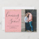 Confetti Dourado em Cartões de Anúncio de Gravação de Fotografias Personalizadas a Rosa. Esperando pais! A moderna mão escreveu carta de tipografia "chegando em breve" para compartilhar suas boas notícias com a família e os amigos. Recursos acima e o quadro de configuração ouro inferior em fundo cor-de-rosa pincelado. Você pode personalizar a design substituindo os textos simples e a foto vertical. Se precisar de ajuda ou de itens correspondentes, entre em contato comigo! 3351