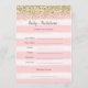 Cartão de predições de bebês com design de brilho dourado falso e listras cor-de-água rosa.