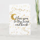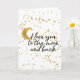 Cartão Dourado, te amo à lua Confetti