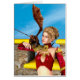 Renderização digital 3D de uma bela Dragão Senhora com um pequeno Dragão no braço num castelo de conto de fadas e um fundo azul do céu