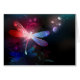 Luminosa, voadora, libélula vermelha, com asas transparentes e detalhadas sobre fundo escuro, noturno, luminoso com plantas tropicais e vagalumes. libélula vermelha.