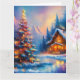 Cartão Dreamy Whimsical Mountain Cabine de Natal