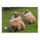 Fotografia de vacas brancas e marrom-claro com chifres descendo em uma pastagem com costas em direção à câmera.